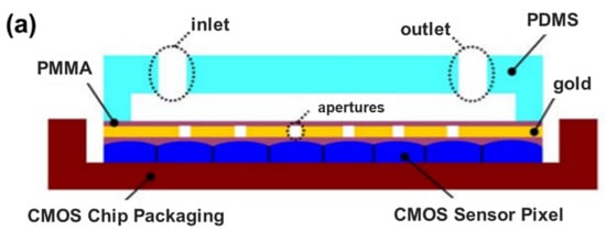 Optical microscopy is widely utilized as an analytical tool for biomedical and biological applications. In 2006, Heng et al. reported that the novel technique of optofluidic microscopy (OFM) [48] combines microfluidics and optics for low-cost microscopy imaging with high resolution. Instead of using lots of lenses and other optics of conventional optical microscopes, the OFM performs an imaging translation/scanning of the target biological specimen through a gold-plated array of holes at the bottom of the microchannels.