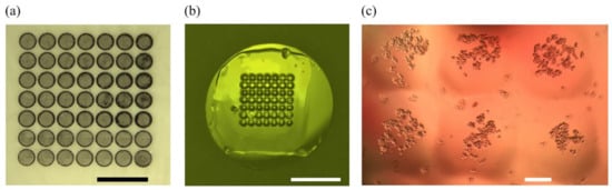- Escutia-Guadarrama, L.; Vázquez-Victorio, G.; Martínez-Pastor, D.; Nieto-Rivera, B.; Sosa-Garrocho, M.; Macías-Silva, M.; Hautefeuille, M. Fabrication of low-cost micropatterned polydimethyl-siloxane scaffolds to organise cells in a variety of two-dimensioanl biomimetic arrangements for lab-on-chip culture platforms. J. Tissue Eng. 2017, 8. [Google Scholar] [CrossRef] [PubMed]
