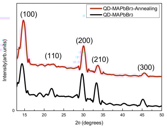 - Schmidt, L.C.; Pertegás, A.; González-Carrero, S.; Malinkiewicz, O.; Agouram, S.; Espallargas, G.M.H.; Bolink, J.; Galian, R.E.; Pérez-Prieto, J. Nontemplate Synthesis of CH3NH3PbBr3 Perovskite Nanoparticles. J. Am. Chem. Soc. 2014, 136, 850–853. [Google Scholar] [CrossRef] [PubMed]
