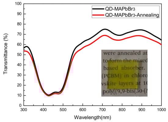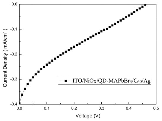 Chen, L.-C.; Lee, K.-L.; Huang, C.-Y.; Lin, J.-C.; Tseng, Z.-L. Preparation and Characteristics of MAPbBr3 Perovskite Quantum Dots on NiOx Film and Application for High Transparent Solar Cells. Micromachines 2018, 9, 205. https://doi.org/10.3390/mi9050205