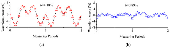 Figure 6b depicts the extracted fundamental wave component of this EMD-based demodulated sensor signal, which shares the same frequency as the original sensor signals. However, as the results in Figure 7b reveals that the standard deviation is decreased from over 4.18% down to 0.89%, waveform errors are drastically diminished. The experiments showed unanimous results to model-based fitting.