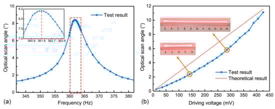 - Naono, T.; Fujii, T.; Esashi, M.; Tanaka, S. A large-scan-angle piezoelectric MEMS optical scanner actuated by a Nb-doped PZT thin film. J. Micromech. Microeng. 2014, 24, 5010. [Google Scholar] [CrossRef]