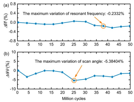 - Moon, S.; Lee, J.; Yun, J.; Lim, J. Two-axis electrostatic gimbaled mirror scanner with self-aligned tilted stationary combs. IEEE Photonics Technol. Lett. 2015, 28, 557–560. [Google Scholar] [CrossRef]