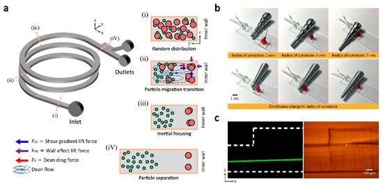 4. Kuntaegowdanahalli, S.S.; Bhagat, A.A.; Kumar, G.; Papautsky, I. Inertial microfluidics for continuous particle separation in spiral microchannels. Lab Chip 2009, 9, 2973–2980. [Google Scholar] [CrossRef] [PubMed]