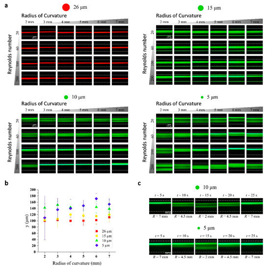 3.3. Size-Dependent Particle Focusing with Varying Radius of Curvature