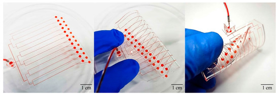 16. Kim, J.; You, J.B.; Nam, S.M.; Seo, S.; Im, S.G.; Lee, W. Rollable Microfluidic Systems with Microscale Bending Radius and Tuning of Device Function with Reconfigurable 3D Channel Geometry. ACS Appl. Mater. Interfaces 2017, 9, 11156–11166. [Google Scholar] [CrossRef] [PubMed]