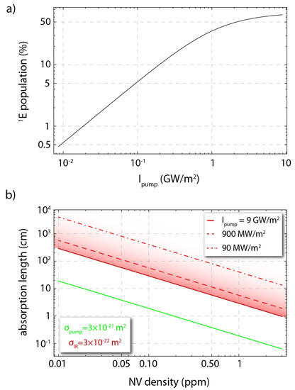 - Ahmadi, S.; El-Ella, H.A.R.; Wojciechowski, A.M.; Gehring, T.; Hansen, J.O.B.; Huck, A.; Andersen, U.L. Nitrogen-vacancy ensemble magnetometry based on pump absorption. Phys. Rev. B 2018, 97, 024105. [Google Scholar] [CrossRef]