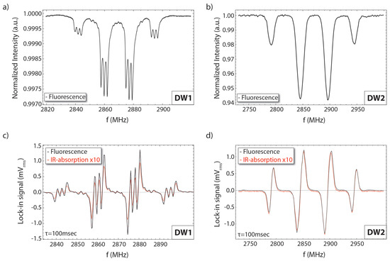 - Dumeige, Y.; Chipaux, M.; Jacques, V.; Treussart, F.; Roch, J.F.; Debuisschert, T.; Acosta, V.M.; Jarmola, A.; Jensen, K.; Kehayias, P.; et al. Magnetometry with nitrogen-vacancy ensembles in diamond based on infrared absorption in a doubly resonant optical cavity. Phys. Rev. B 2013, 87, 155202. [Google Scholar] [CrossRef]