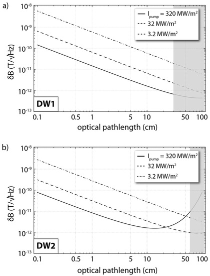 - Chatzidrosos, G.; Wickenbrock, A.; Bougas, L.; Leefer, N.; Wu, T.; Jensen, K.; Dumeige, Y.; Budker, D. Miniature cavity-enhanced diamond magnetometer. Phys. Rev. Appl. 2017, 8, 044019. [Google Scholar] [CrossRef]