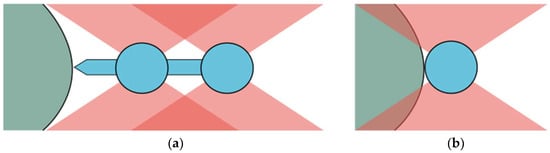 (a) For probing with a micro-dumbbell, the examined object (green) is not exposed to the focused trapping beams, whereas for a single bead (b) a fraction of the beam illuminates the object and may cause unwanted effects.