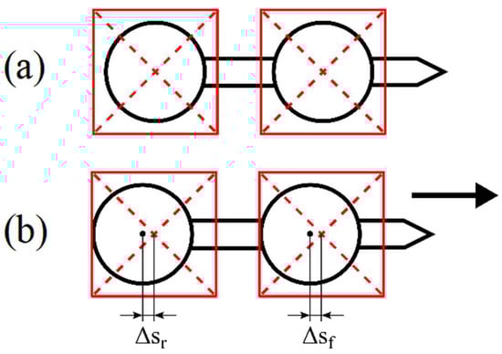 Trapped bead displacement with respect to the trapping laser beams. For a stationary tool (a), the trap centers (red squares) overlap with the centers of the beads. When the traps move and pull the tool (b), the displacements between the trapping beams and the beads centers Δsf and Δsr may be used to measure the drag forces. Further in the paper ‘Δs’ is used to denote any displacement since it is clear from the context whether it refers to the front or rear bead.