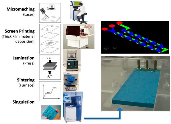 - Gongora-Rubio, M.R.; Espinoza-Vallejos, P.; Sola-Laguna, L.; Santiago-Avilés, J.J. Overview of low temperature co-fired ceramics tape technology for meso-system technology (MSST). Sens. Actuators A Phys. 2001, 89, 222–241. [Google Scholar] [CrossRef]