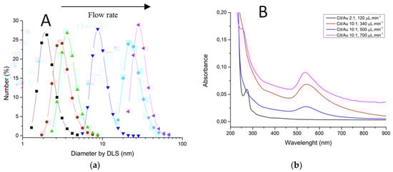 - Ftouni, J.; Penhoat, M.; Addad, A.; Payen, E.; Rolando, C.; Girardon, J.S. Highly controlled synthesis of nanometric gold particles by citrate reduction using the short mixing, heating and quenching times achievable in a microfluidic device. Nanoscale 2012, 4, 4450–4454. [Google Scholar] [CrossRef] [PubMed]