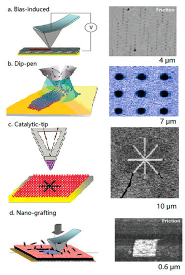 - Chen, Y.J.; Hsu, J.H.; Lin, H.N. Fabrication of metal nanowires by atomic force microscopy nanoscratching and lift-off process. Nanotechnology 2005, 16, 1112–1115. [Google Scholar] [CrossRef]