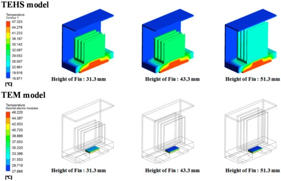 Numerical analysis results of temperature gradient of the TEHS with varying height of cooling fin.