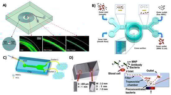 - Lee, W.; Kwon, D.; Choi, W.; Jung, G.Y.; Au, A.K.; Folch, A.; Jeon, S. 3D-printed microfluidic device for the detection of pathogenic bacteria using size-based separation in helical channel with trapezoid cross-section. Sci. Rep. 2015, 5, 7717. [Google Scholar] [CrossRef] [PubMed]