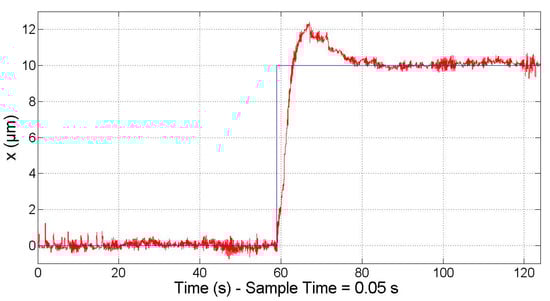 Moreover, it was verified that the motor is able to respond to the minimal required motion, that is, 10 µm, as stated in the Introduction. In Figure 10, the response (red line) to a 10 µm step (blue line) is represented.