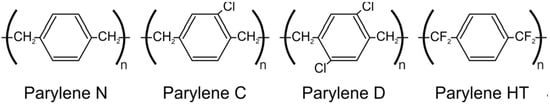 - Coating, P.T. Parylene Properties. Available online: https://www.parylene.com/Portals/0/CWPS-Parylene-Properties-Chart.pdf (accessed on 20 August 2018).