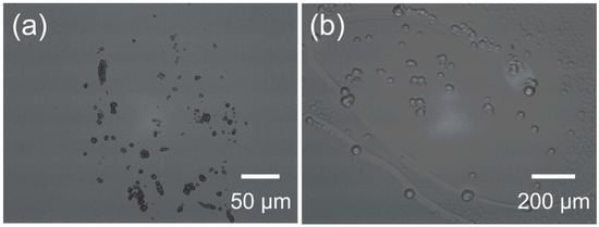Parylene is deposited by CVD, producing a highly uniform and conformal coating [103]. Typically the film is transparent and homogenous; however, in some instances Parylene coatings may be marred by odd “spherule” inclusions. The macroscopic appearance is hazy and white, sometimes described as “cloudy” Parylene. The microscopic appearance is presented in Figure 11. The spherules may be unreacted Parylene monomers that bond to each other in the gas phase prior to deposition, a result of insufficient molecular collisions before deposition caused by a high volume-to-surface-area of the deposition chamber [104]. Increasing the surface area of the chamber, by including structures with large surface-area such as a mesh, may prevent the formation of these spherules. SCS, a manufacturer of Parylene coating tools, describes the cause as high deposition rates and chamber pressure.