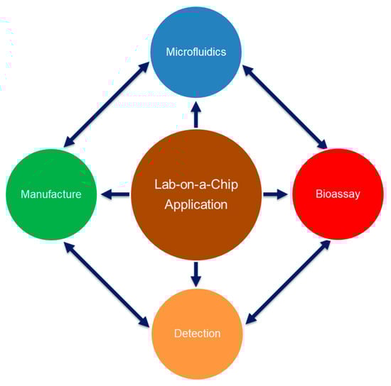 The functionality of Lab-on-a-Chip application for the life sciences of microfluidics, manufacture, bioassays and detection technologies, which may mutually impact each other, and thus the overall Key Performance Parameters (KPIs) of the device in a highly sensitive manner. These four elements thus form a technology complex that needs to be comprehensively mastered to arrive at commercially viable solutions.