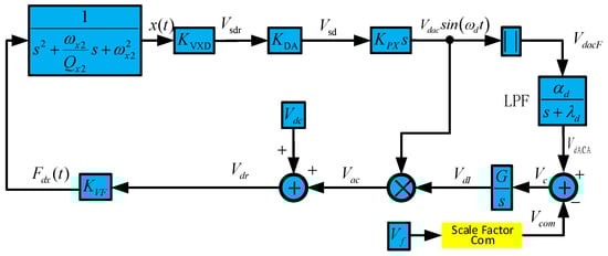 The dual-mass MEMS gyroscope drive mode closed-loop controlling system employs self-oscillation technology, and the controller is based on automatic gain control (AGC) technology. The control system is shown in Figure 4. The system working state is analyzed as follows []: