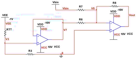 The temperature bias compensation circuit is shown in Figure 8; the parameters and simulation results are shown in Table 5, and the following functions can be obtained: