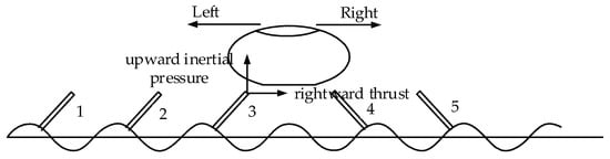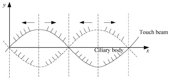 As shown in Figure 5, we assumed that the ciliary bodies’ density on the touch beam is sufficiently large. It can be seen that the directions of vibration of the ciliary bodies change at the peak or trough of a wave. Hence, when one finger’s skin moves from left to right, the increase and decrease of the friction coefficient shows a periodic variation pattern.