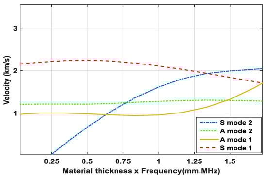In the process of ultrasonic wave propagation, to consider the analogy of phase transition, the simplified one-dimensional equation fits adequately because the ultrasonic pulse detector or receiver focuses only on the first arrival of the signal of the longitudinal wave and the subsequent signals are ignored by the system. Furthermore, ultrasonic waves were analyzed through the functionality of the solid-medium wave-transformation analogy. Studies of the phase transition state that for the monitoring of composite structures, the A-mode of Lamb waves gives a clearer and more appropriate result than the S-mode [44,45]. When the propagated wave travels in-phase, it is considered as S-mode and when it travels out-of-phase it is considered A-mode. The relationship can be altered by the placement of the PZT transducers and the polarization of the specimens. This makes it easy to recognize the individual modes of the waves by adding or subtracting one signal from the other. As for the nomination of the PZT transducers, the arrangement of the signals can be made according to its order. If cracks or damage are detected, the signal’s phases will be identical. The waves propagation speed, s, in Equation (5) is independent of ∂u/∂t, or that of the local velocity/speed shift of the elements transmitting the wave through sections. The time-of-flight is used for the specification of the velocity change of the waves. The velocity of waves is modified by dynamic variations of the material thickness. The elastic properties of the transmuting medium, density, and Poisson’s ratio define the wave speed, s. In this study, all the wave speed values are assumed constant. Hence, the results were compared for all three methods.