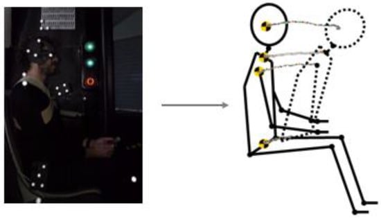 Markers were used to follow several points of the subject, from the head to the hip, during the tests. By using video photogrammetry software, the movement of the volunteer inside the autonomous bus during the braking time was assessed, in this way obtaining the position of markers for each frame.