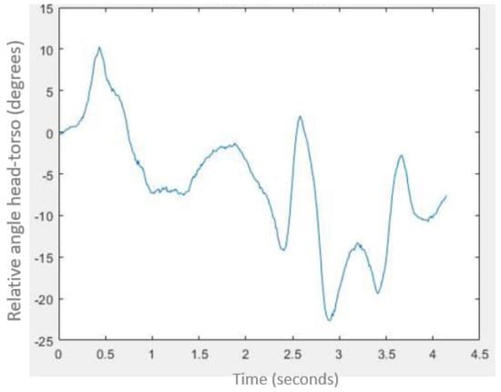 The position of the makers was later assessed through several scripts in Matlab [], making it possible to register the movement evolution along the time. The trajectory of all these markers was obtained to know the range of movement for each volunteer and each test. Moreover, special attention was paid to the relative movement observed between head and torso during braking, since it has long been assumed that head displacement to the trunk is an element of the cervical injury risk. Consequently, if a lesser relative movement between these body areas is observed, it suggests that the conditions used in that test may be protective.