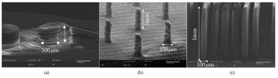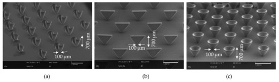 - Sato, H.; Houshi, Y.; Shoji, S. Three-dimensional micro-structures consisting of high aspect ratio inclined micro-pillars fabricated by simple photolithography. Microsys. Technol. 2004, 10, 440–443. [Google Scholar] [CrossRef]
