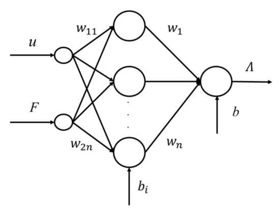 Equations (6) and (7) represented the voltage hysteresis and load hysteresis in piezoceramics, respectively, where k was the slope of H1, m was the slope of H2 and a and c referred to the offset coefficient of the dynamic weight. The cross-coupling effect between the two excitations was represented by λ [u, F] (t) and analyzed by a backpropagation neural network (BPNN) [18]. For u (t) and F (t), a BPNN was established in Figure 3.
