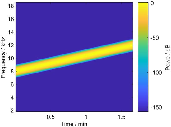 where is the start angular frequency of the linear sweep, and is the end angular frequency. Figure 6 illustrates the chirp signal, with the parameters listed in Table 2, in the time-frequency domain. The instantaneous frequency of the signal linearly raises from 8 kHz to 12 kHz within 100 s.