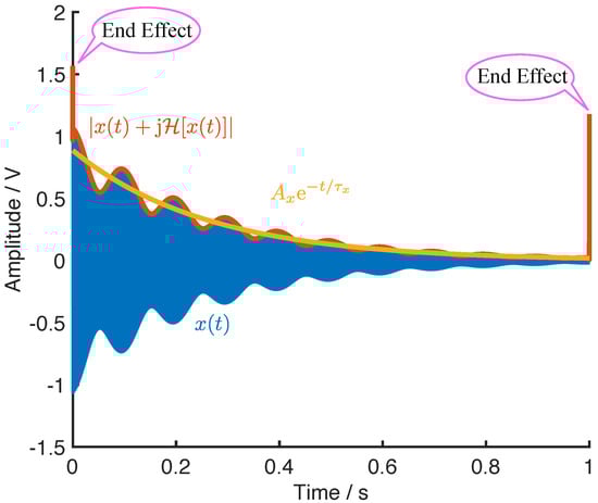 The envelope of the ring-down beats, calculated from the magnitude of the analytic signal, are also depicted in Figure 11, where the exponential fitting curve of the envelope is also presented. It should be noted that the start point and the end point of the envelope exist serious errors due to the end effect of the Hilbert transform. Therefore, the fitting processing of the ring-down should exclude the start and the end of the envelope.