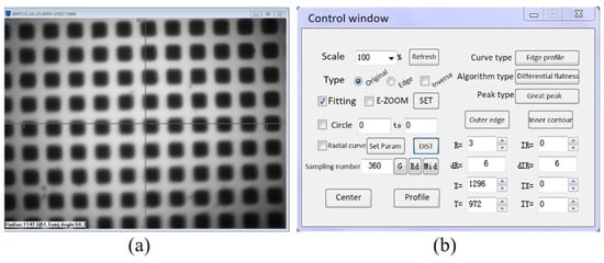 (a) The experimental image obtained by the industrial camera. (b) The operating interface of the developed image processing software.