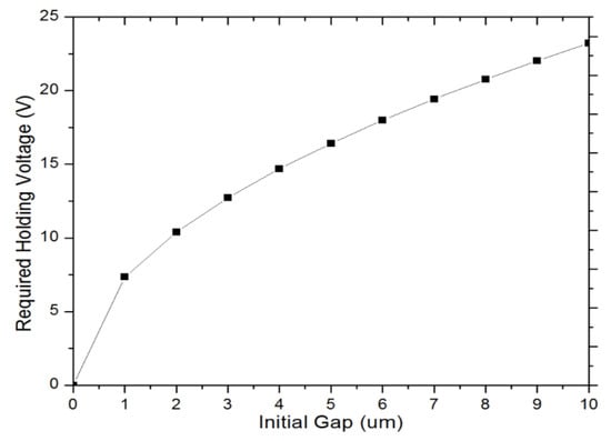Required electrostatic holding voltages versus various initial gaps between switching electrodes.