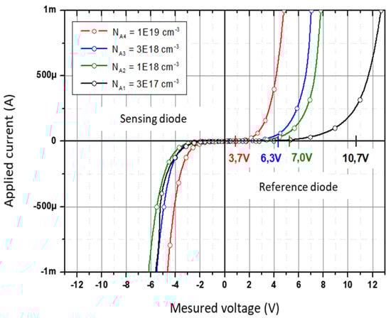 Various Zener diodes with different p-type initial doping levels was fabricated, and the characteristics of the whole system were first studied (Figure 7).