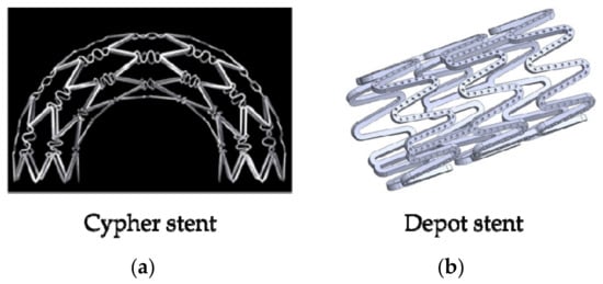Two structures of DESs: (a) Cypher stent [40,41]; (b) Depot stent [43].