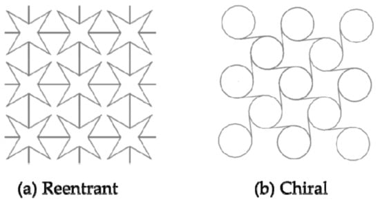 Auxetic structures of application stents [115]: (a) Reentrant; (b) Chiral.