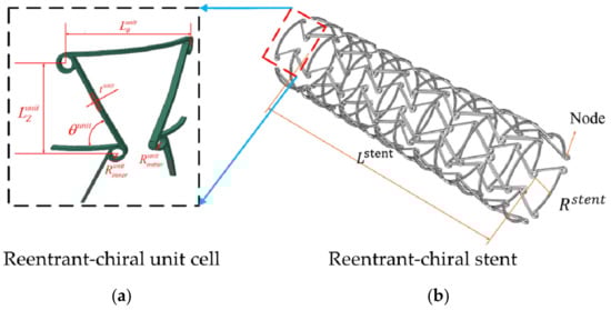- Ruan, X.L.; Li, J.J.; Song, X.K.; Zhou, H.J.; Yuan, W.; Wu, W.W.; Xia, R. Mechanical Design of Antichiral-Reentrant Hybrid Intravascular Stent. Int. J. Appl. Mech. 2019, 10, 1850105. [Google Scholar] [CrossRef]
