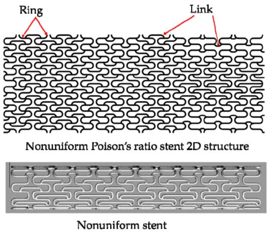 - Han, Y.F.; Lu, W.F. Optimizing the deformation behavior of stent with nonuniform Poisson’s ratio distribution for curved artery. J. Mech. Behav. Biomed. 2018, 88, 442–452. [Google Scholar] [CrossRef] [PubMed]