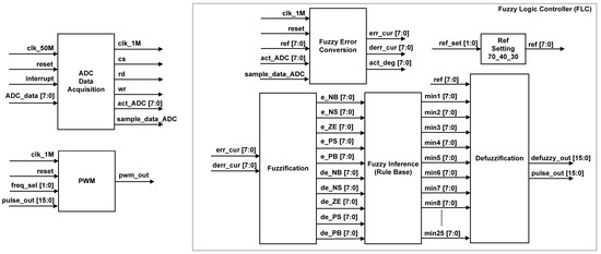 - Sharma, S.; Patel, P.M.C. Implementation of Fuzzy Controller in Verilog. Int. J. Sci. Res. Dev. 2016, 4, 743–745. [Google Scholar]