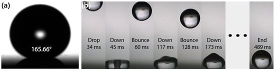 - Schutzius, T.M.; Jung, S.; Maitra, T.; Graeber, G.; Köhme, M.; Poulikakos, D. Spontaneous droplet trampolining on rigid superhydrophobic surfaces. Nature 2015, 527, 82–85. [Google Scholar] [CrossRef]