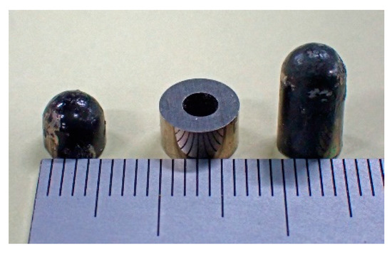 Figure 13 shows one of the measurement samples made of tool steel. Its dimensions were ϕ5 × H4 mm. The two experimental confirmations described in this article used this sample.