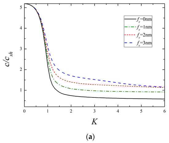 - As opposed to the surface dielectricity and surface density, the enhanced surface elasticity and surface piezoelectricity increase the phase velocity. The expression of in Equation (A11) may provide some theoretic supports for this conclusion, in which the former two parameters are located on the denominator and the latter on the numerator.