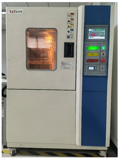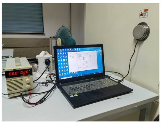 We carry out temperature experiment to obtain the output signal of FMVMG in different temperature environment. The main equipment used in temperature experiment are temperature control box, data acquisition card, signal generator, and the prototype of FMVMG. The experimental equipment is shown in Figure 6 and Figure 7. The temperature control box in the laboratory can control the temperature accurately, we have carried out the experiment in the temperature range of −40 °C to 60 °C. The computer beside the device is used to collect the output signal of the FMVMG.