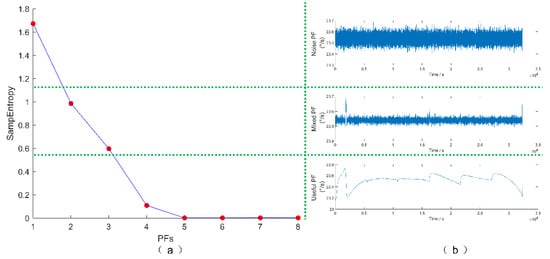 Since the results of LMD contain many PF components, it is not possible to denoise all PF components separately. In order to simplify the subsequent noise reduction processing, the PFs are classified by sample entropy, which can be divided into noisy PF, mixed PF, and useful PF.