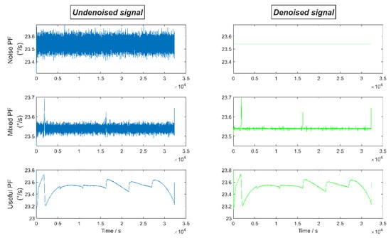 The denoising results of noise PF, useful PF, and mixed PF, respectively.