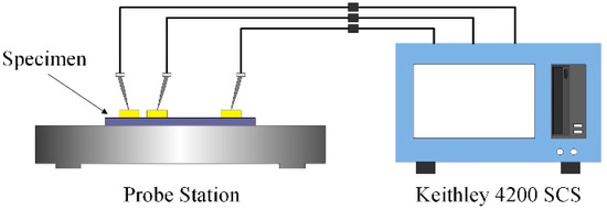 The experiment is performed by using a DC probe station and a Keithley 4200-scs semiconductor characterization system, as shown in Figure 8. A voltage sweep from 0 V to Vd with an increment of 0.1 V is applied between the drive electrode and the cantilever beam, while the current between the cantilever beam and the contact electrode is monitored as the criterion for contact. When contact occurs, a sudden step in the current is detected and the applied voltage is recorded. The strategy of the experiment is upward search. Vd is set to 80% of UCA in Table 3 and UCB in Table 4, and the upward search strategy is used with an increment of 0.1 V until Vd reaches 200 V, which is the upper limit of the Keithley 4200-scs semiconductor characterization system. If no contact is detected, it will be recorded as no result.