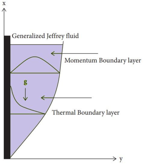 where is a dimensionless Prandtl number, is a dimensionless thermal Grashof number and are Jeffrey parameters, respectively.